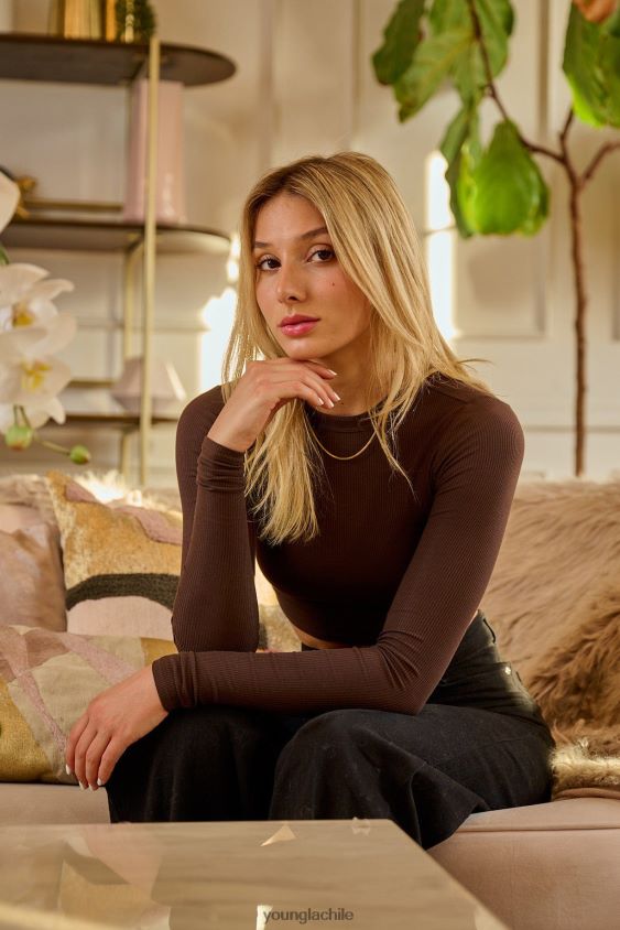 w402 manga larga acanalada carbón ropa mujer YoungLA N8PZ1066 - YoungLA pantalones